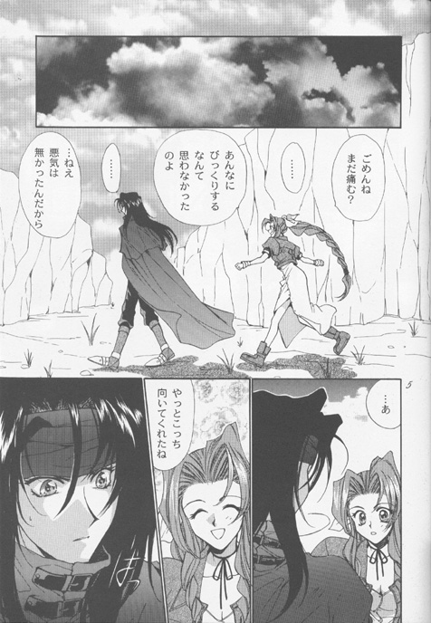 Aeris: Sorry.. Does it still hurt? Vincent: ...... Aeris: Somehow I didn't think you could be surprised. Vincent: ...... Aeris: ...Hey, I didn't do it on purpose, so... ...Ah! You finally looked at me! [se: "haa" (small gasp of surprise)]