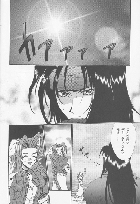 [sound effect: "kaaaa" (light shining)] Vincent: what am I doing in a place like this... [sound effect: "zazaaan" (wind rustling through something)] Aeris: *giggles*