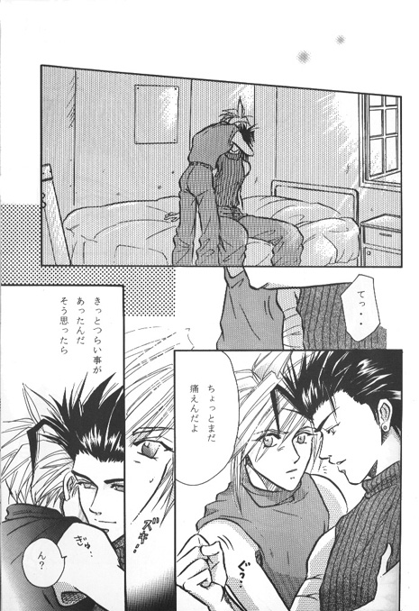 [sound effect: "gu" (flex)] [sound effect: "zuki" (sharp pain)] He must have had a tough time. Thinking about that... [sound effect: "gyu" (grab)] Zack: Hmm?