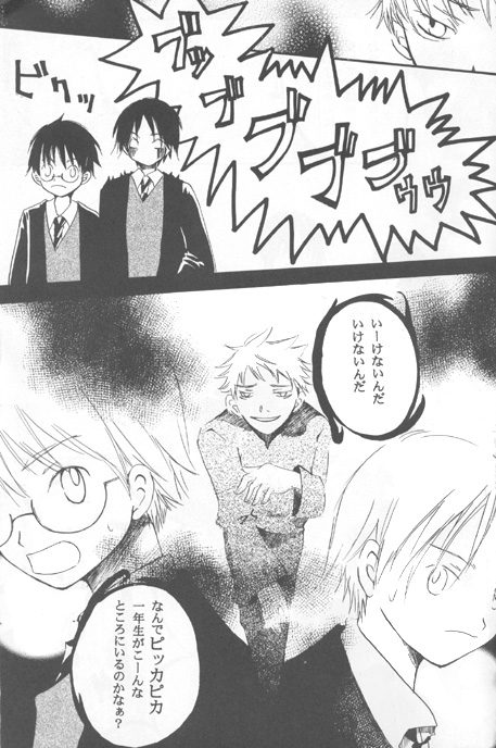 Ghost (probably Peeves the Poltergeist): BUUBUBUBUBUUU! [sound effect: "bikuu" (surprise)] Peeves: You're not allowed, you're not allowed! What are two nice little first-years doing in a place like this?