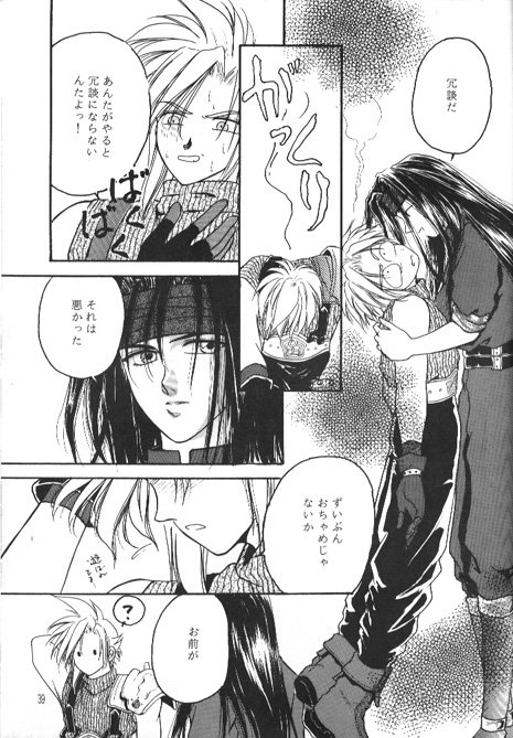 [sound effect: "baku baku" (probably a pounding heart)] Vincent: Sorry... Cloud: Wasn't that too playful? (You were playing with me...) Vincent: You... Cloud: ?